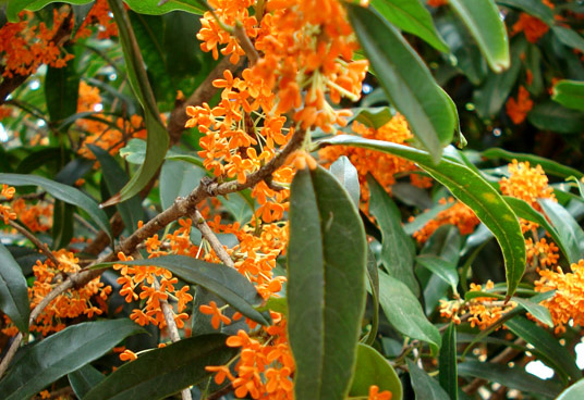 桂花(英文Sweet Olive),木犀科木犀属,又名"岩桂"、"木犀",俗称桂花树。常绿灌木或小乔木,为温带树种。叶对生,多呈椭圆或长椭圆形,树叶叶面光滑,革质,叶边缘有锯齿。花簇生,花冠分裂至基乳有乳白、黄、橙红等色。中国有包括信阳市、衢州市、汉中市在内的20多个城市以桂花为市花或市树。桂花以其淡然贞定品格为世器许。《载敬堂集·江南靖士诗稿·桂花》:"瑶树静当严序来,千花杀后有花开。清贞更造清芬境,大地萧条赖挽回。" 相关剧本、歌曲有《八月桂花遍地开》等。